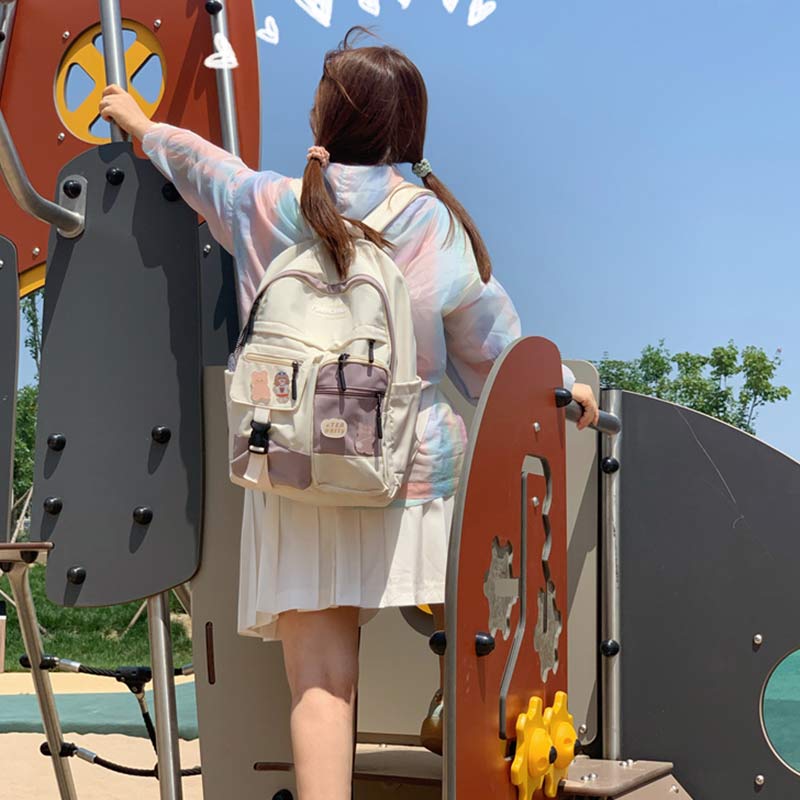 Elevate your style with our elegant Stylish Color Block College Style Backpack. Its sleek design and color block pattern exude sophistication, making it the perfect accessory for any outfit. With its spacious interior and comfortable straps, this backpack combines fashion with functionality, making it a must-have for any college student or fashionista on-the-go.