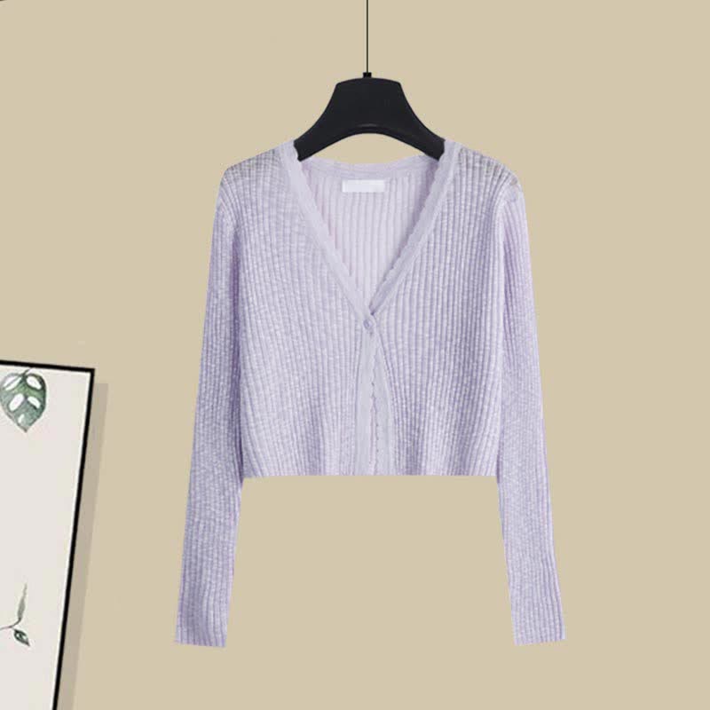 This elegant set includes a sweet cardigan with a floral print, paired with a matching slip dress. Perfect for adding a touch of feminine charm to any outfit. The lightweight fabric ensures comfortable wear all day long. Embrace your elegant side with this beautiful set.