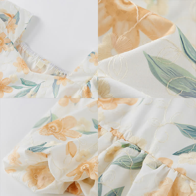 Sweet Floral Print Puff Sleeve T-Shirt Denim Shorts