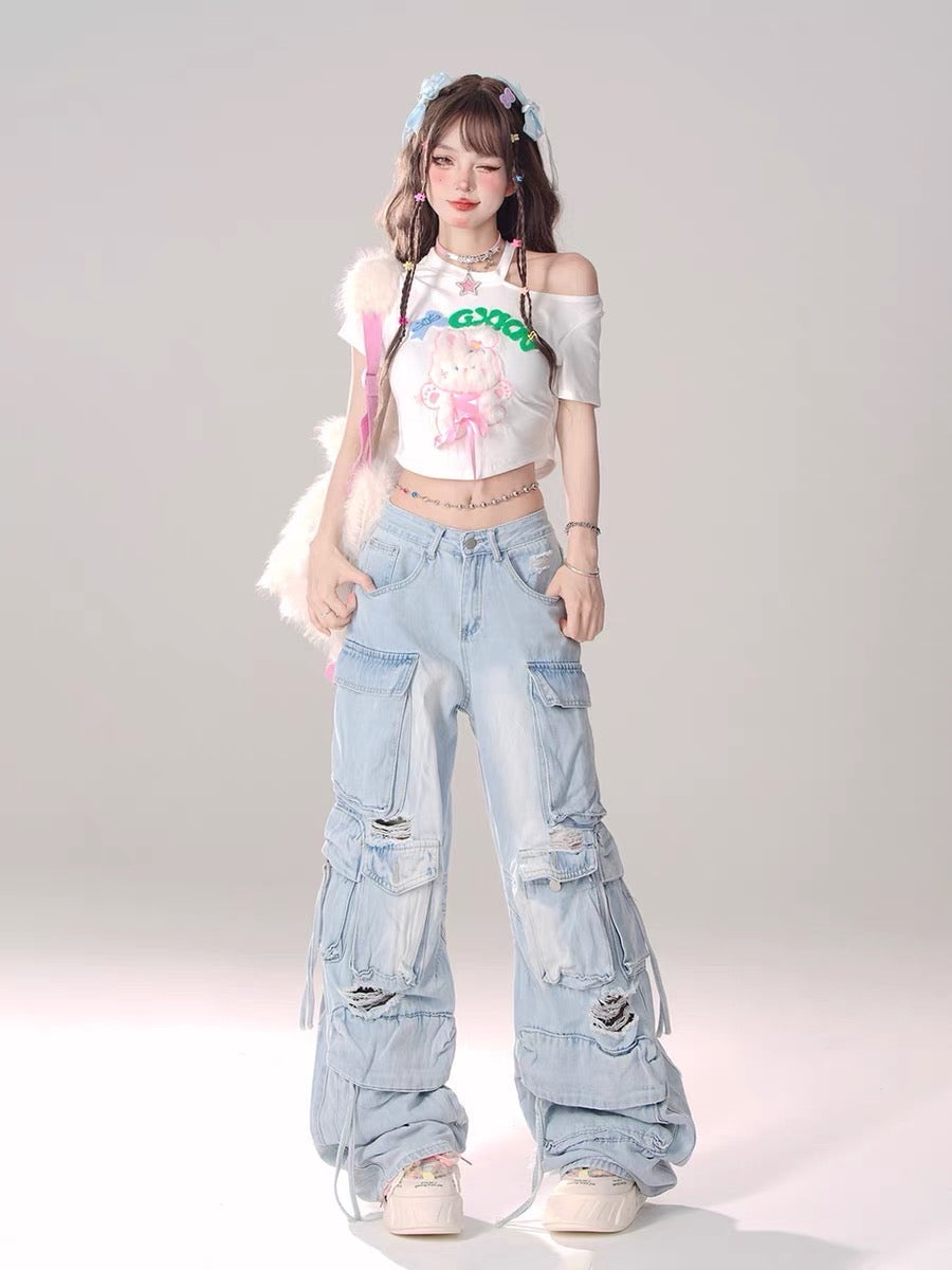 Sweet Pink Summer Off-Shoulder T-Shirt