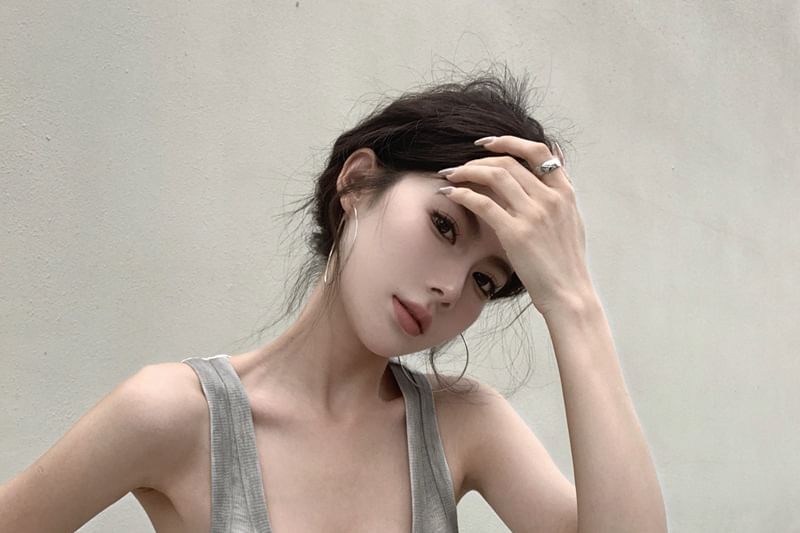 Tank Neck Scoop Gradient Ribbed Slim Fit Top