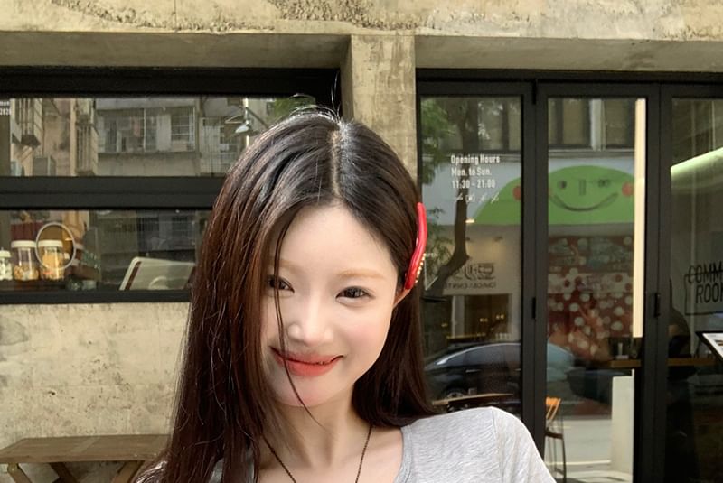 Tee Neck Sleeve Short Plain Henley