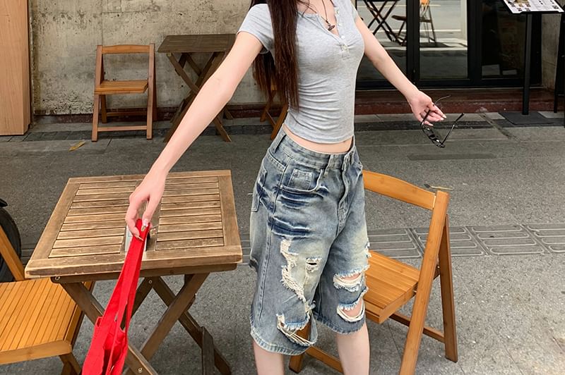 Short Sleeve Henley Neck Plain Tee