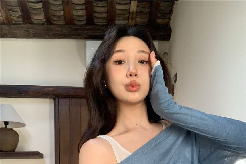 Tone T-Shirt Cold-Shoulder Two-Piece Long-Sleeve Two Mock