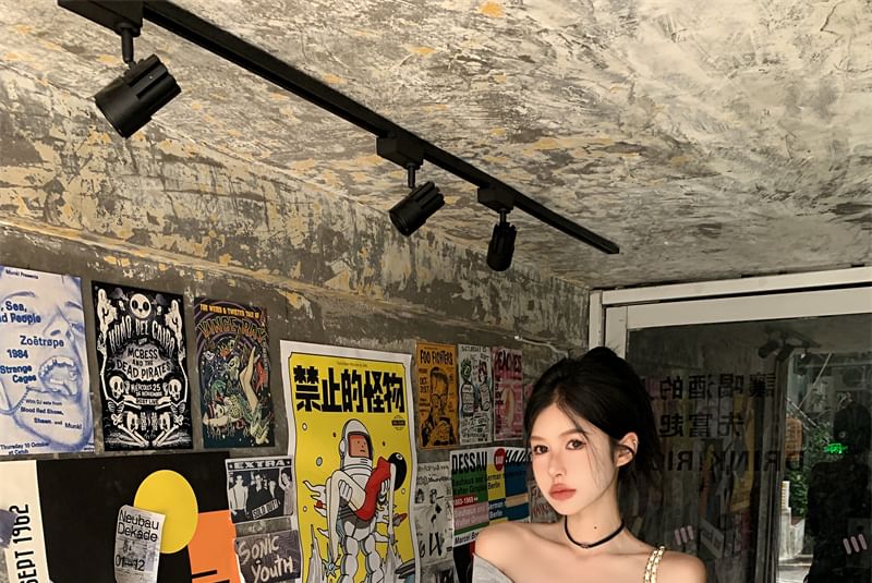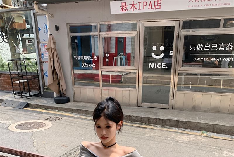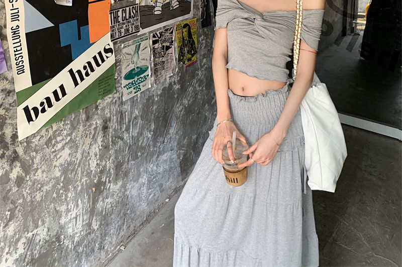 Off Shoulder Plain Twist Top / Ruched Midi Rise Midi A-Line Skirt