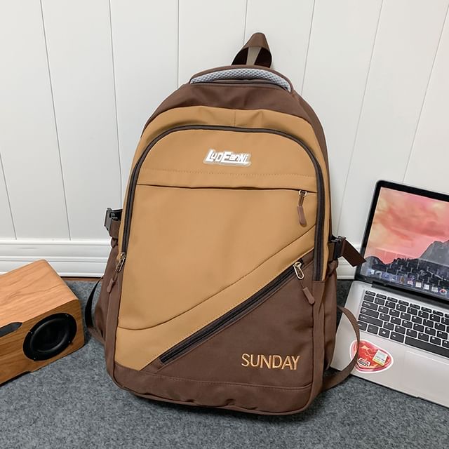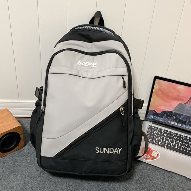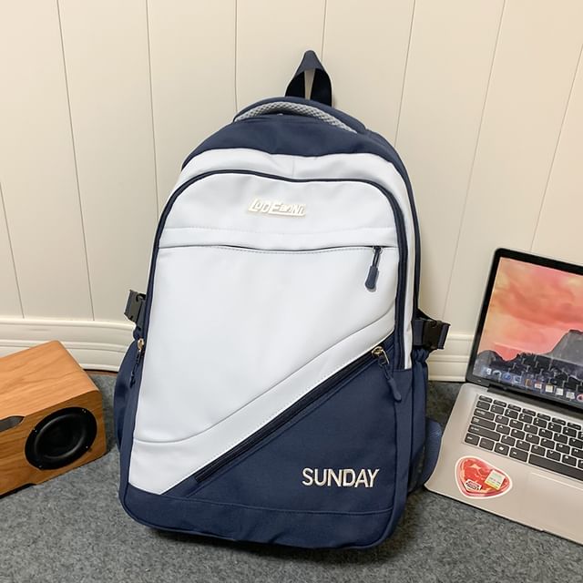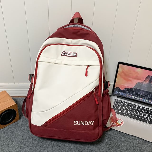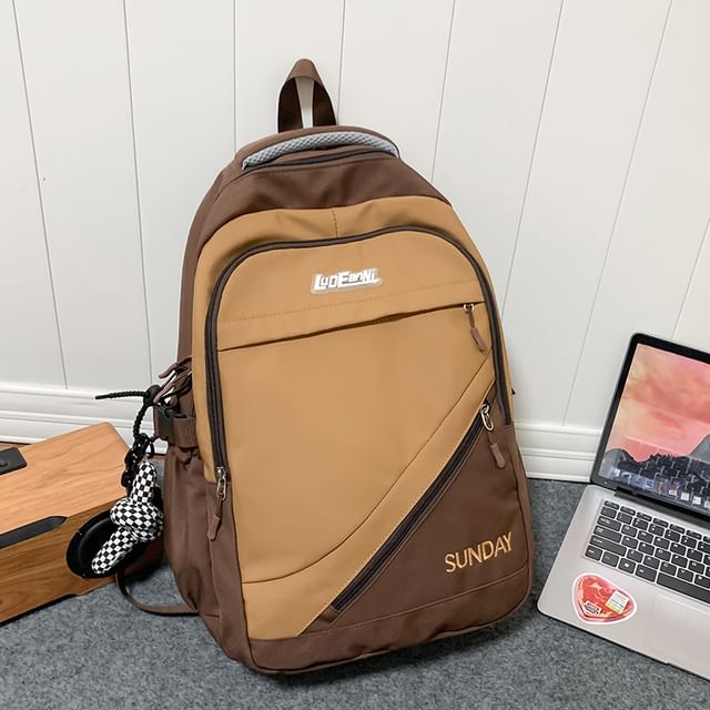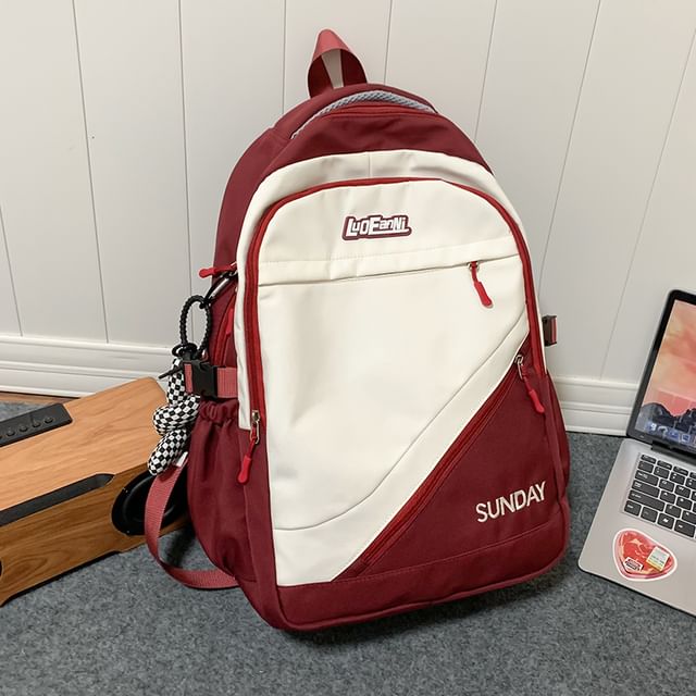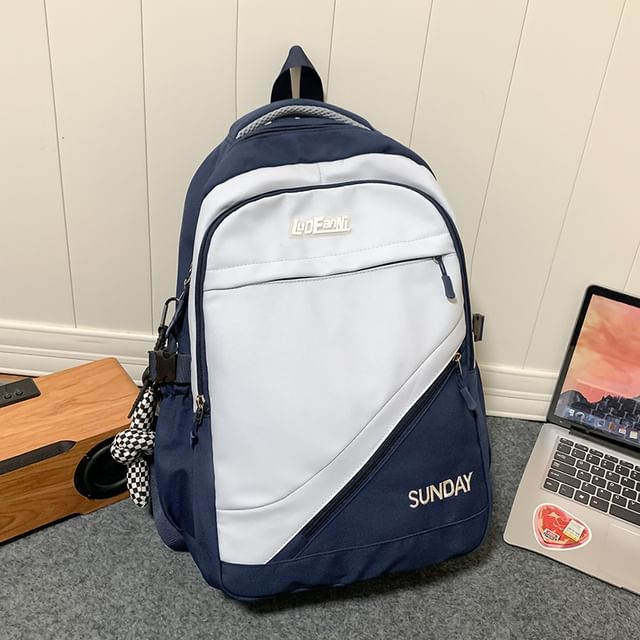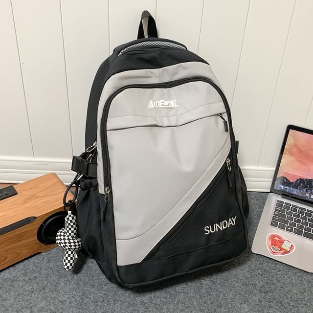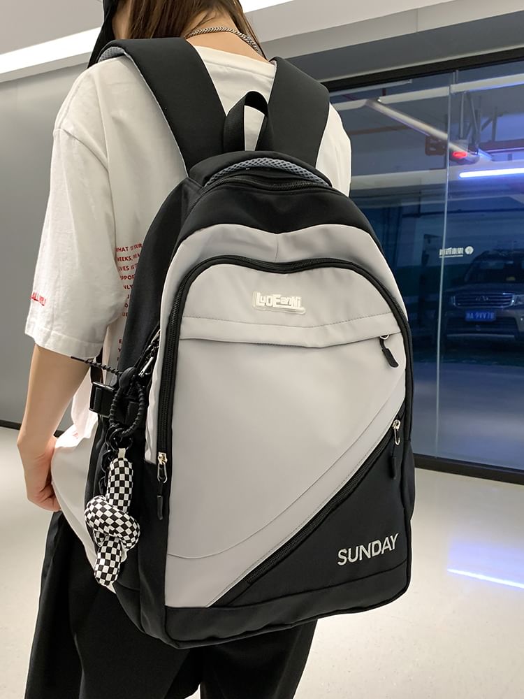 Two Tone Lettering Nylon Backpack / Bag Charm / Set