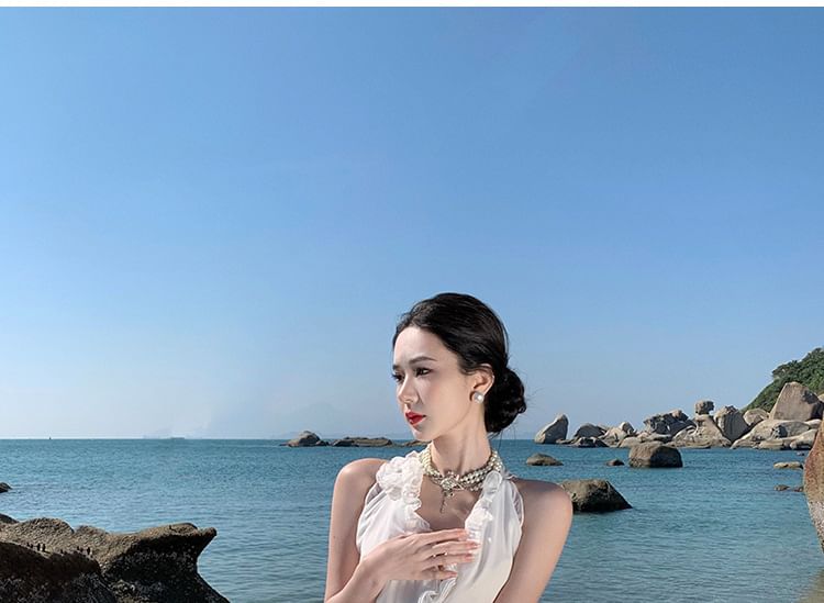 Sleeveless V-Neck Plain Slit Maxi A-Line Dress