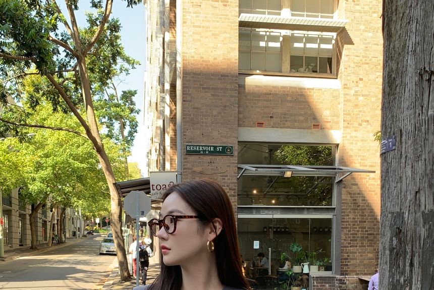 V-Neck Plain Crop Button Vest / Mid Waist Wide Leg Suit Pants