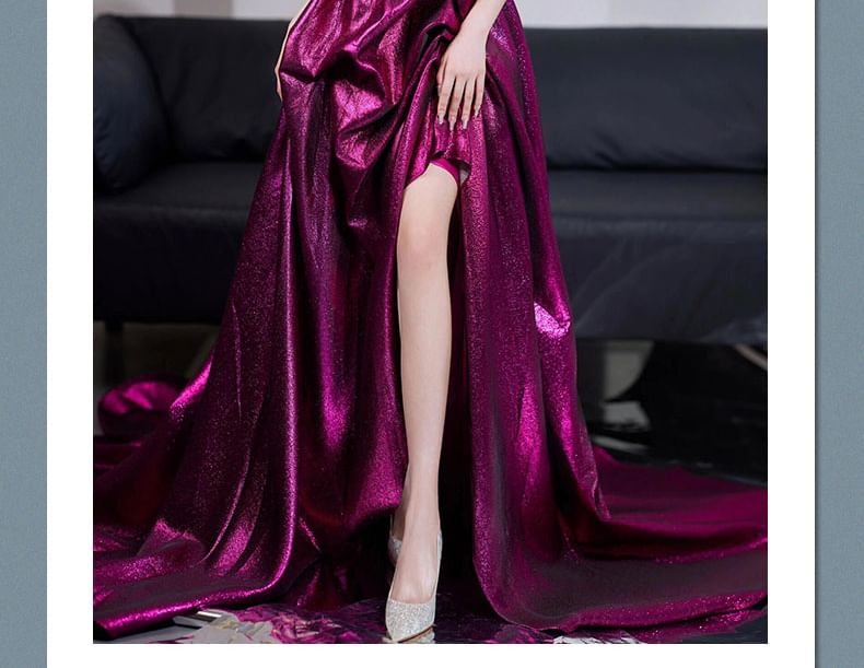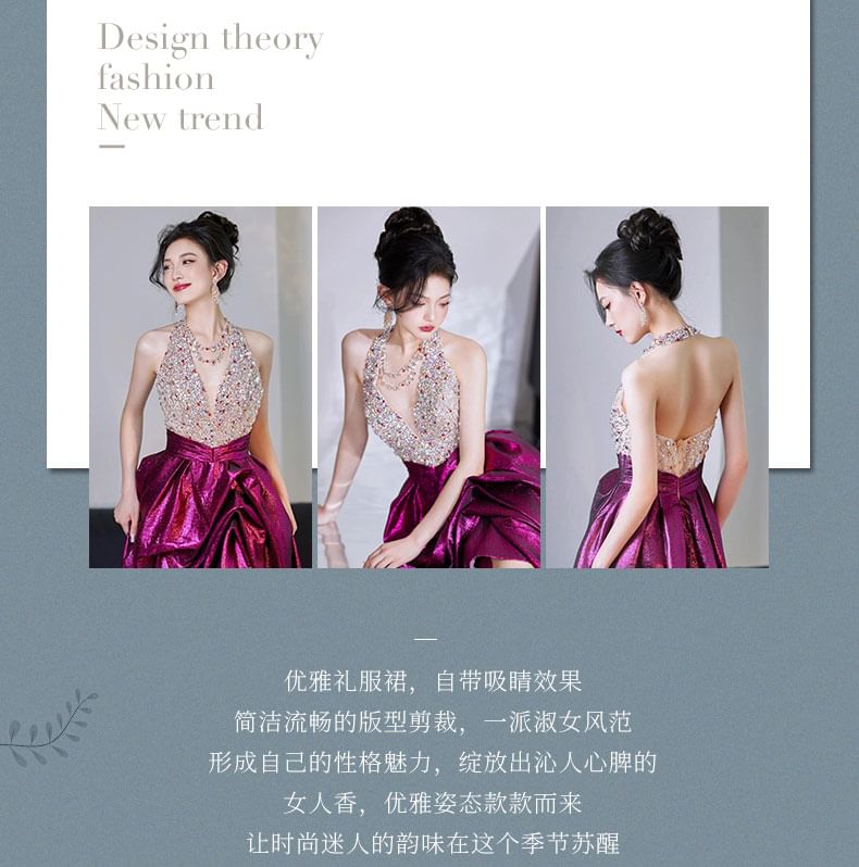 V-Neck Sleeveless Sequined A-Line Evening Gown