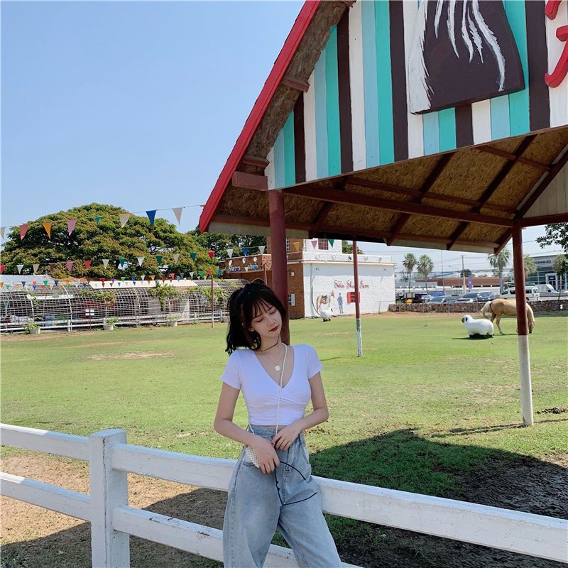 Short-Sleeve V-Neck Crop Top