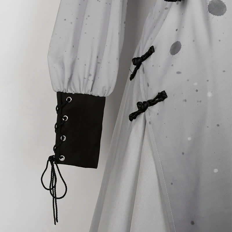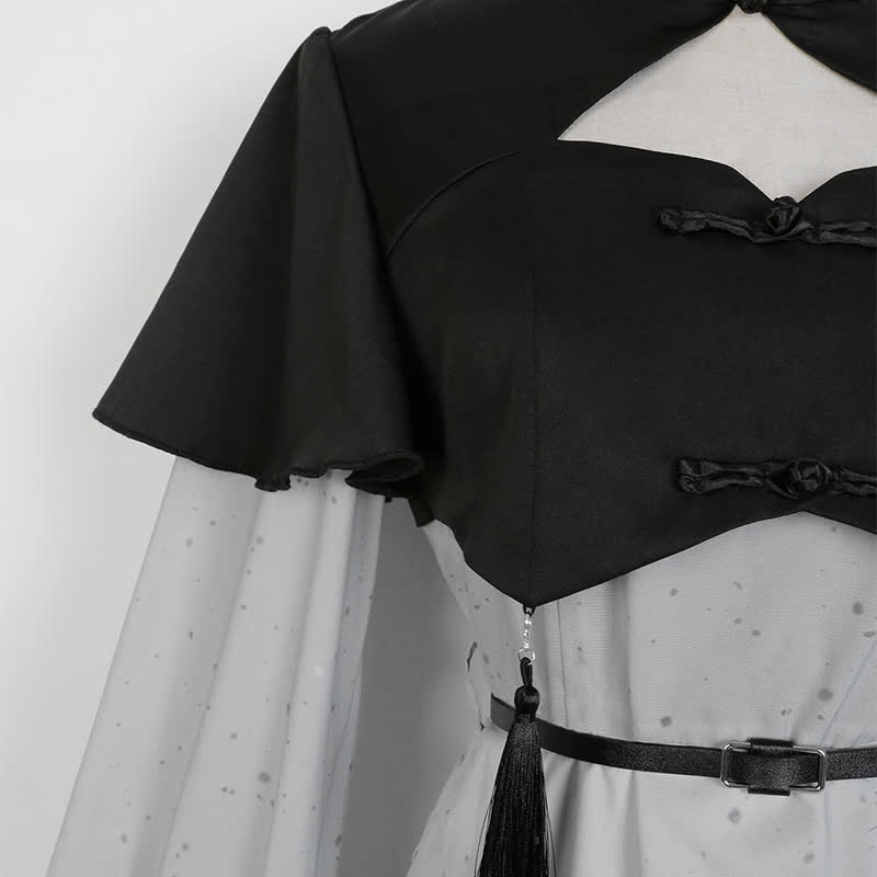 Vintage Bamboo Print Irregular Hollow Out Buckle Dress