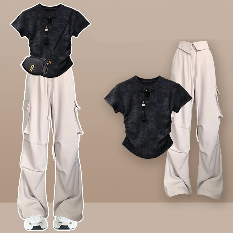 Effortlessly elevate your style with our elegant Buckle Tassels T-Shirt Cargo Pants. Showcasing buckle tassels and cargo pockets, these pants offer both fashion and functionality. Experience the perfect blend of sophistication and convenience with every wear.