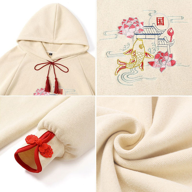 Vintage Fish Embroidery Hooded Dress